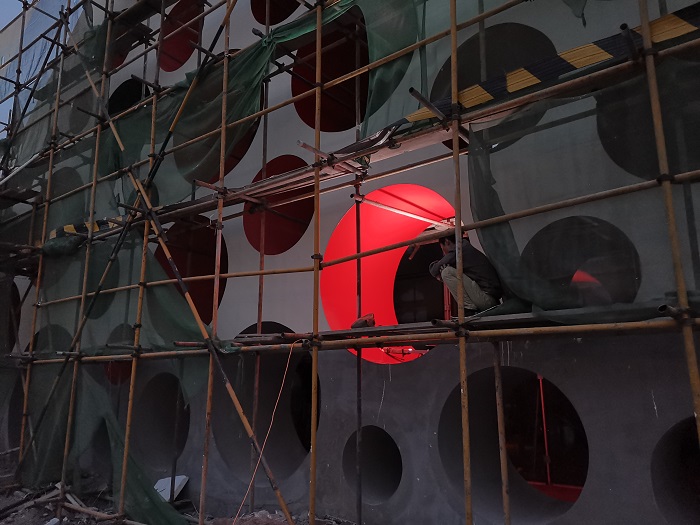 為最佳還原美術(shù)館正面圓形結(jié)構(gòu)的顏色和整體形態(tài),信達(dá)電通采用照度4000k-4500k的投光燈。并在實(shí)施中根據(jù)樓體的實(shí)際情況不斷調(diào)試,調(diào)整燈具的位置和發(fā)光角度,以實(shí)現(xiàn)預(yù)期的照明效果。