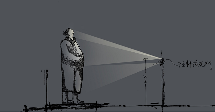 《蒼生》選取五種顏色的燈光,象征金、木、水、火、土,染亮雕塑陣列的不同區域。五行相生相克,各自獨立,又相互依存,與雕塑作品主題相呼應。不同的燈光顏色相互融合,又混合出新的顏色,整個蒼生世界變得絢麗多彩。