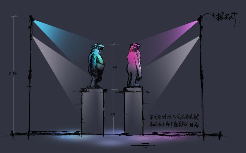 此次雕塑展作品點亮由信達科技捐助設計,信達合作伙伴羅萊迪思捐助燈具。董事長王春龍先生親臨現場考察,帶領團隊根據雕塑不同形態和形象進行燈光設計。