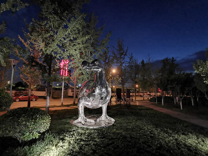 《渡渡鳥》用樹影燈映亮雕塑周圍環境,以小型投光燈重點強調雕塑局部,仿佛渡渡鳥又回到了這個世界。