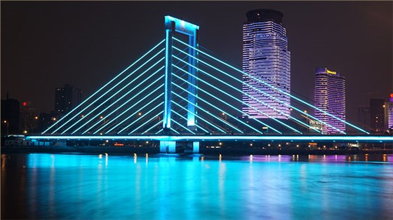 橋體照明在充分考慮岸上、橋上、車行、步行等不同人群的觀看范圍后,最終確定了照明方案,強調其景觀效果,達到視覺美學,使人們無論是在遠距離遙看,還是近距離觀看,都能夠感受到橋體所帶來的視覺美感。