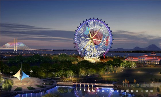 “丹東之眼”是中朝邊境一道亮麗的風景線,信達電通在設計中采用絢麗的燈光和濃重的色彩。設計師通過燈光的動態變化、光色的轉換,創造出一個歡樂、覽勝的燈光樂園。當夜晚降臨,彩燈閃爍,摩天輪一圈圈地劃過點亮丹東最美天際線,顯現出其非凡的魅力!