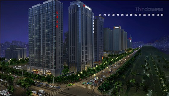 信達電通照明設計團隊現場實勘,發現目前西安天力大廈建筑夜景照明缺失,無法形成整體的夜景照明體系,而且西安天力大廈的建筑照明手法單一,沒有層次感。針對現場實勘情況和目前的夜景照明存在的問題,信達電通照明設計團隊對西安天力大廈做了整體的建筑景觀亮化照明設計,首先,改善目前的照明缺失,增加天力大廈建筑立面及頂部的照明增加夜景照明的層次感,強調天際線效果。