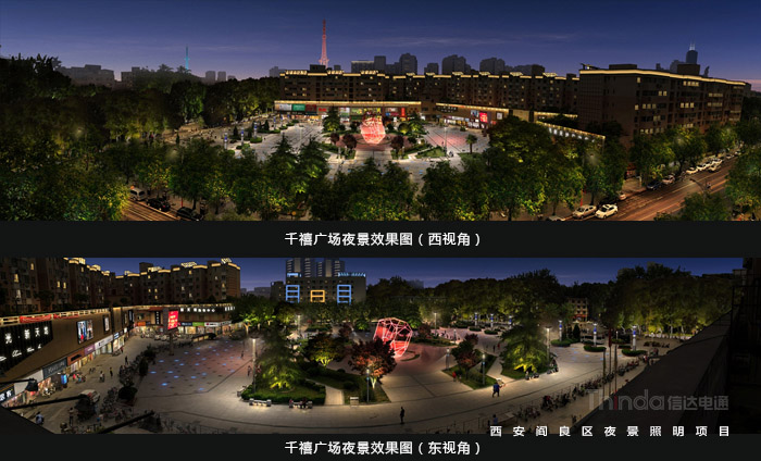 閻良區(qū)亮化示范街部分樓宇、景觀亮化設(shè)計(jì)效果圖與亮化實(shí)施后的實(shí)景賞析: