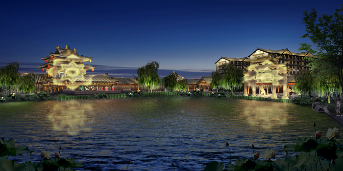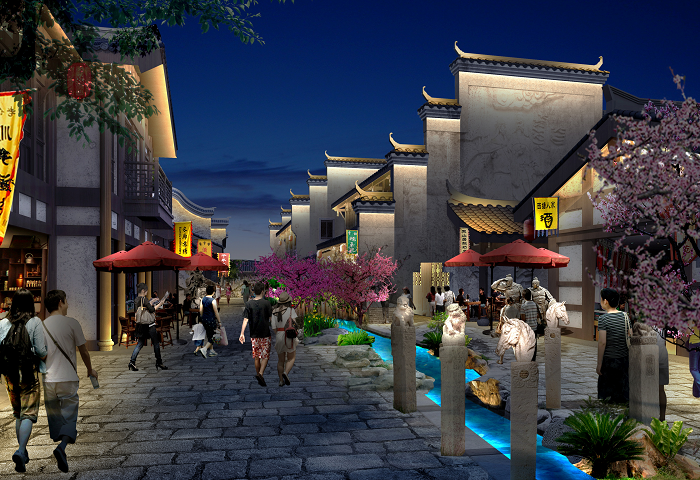 信達電通根據(jù)忠義街布局、載體特點,對整體夜景進行規(guī)劃,并對建筑、廣場、雕塑、水體、景觀、道路等載體進行具體設(shè)計,打造一場互動體驗式的三國主題度假休閑之旅。